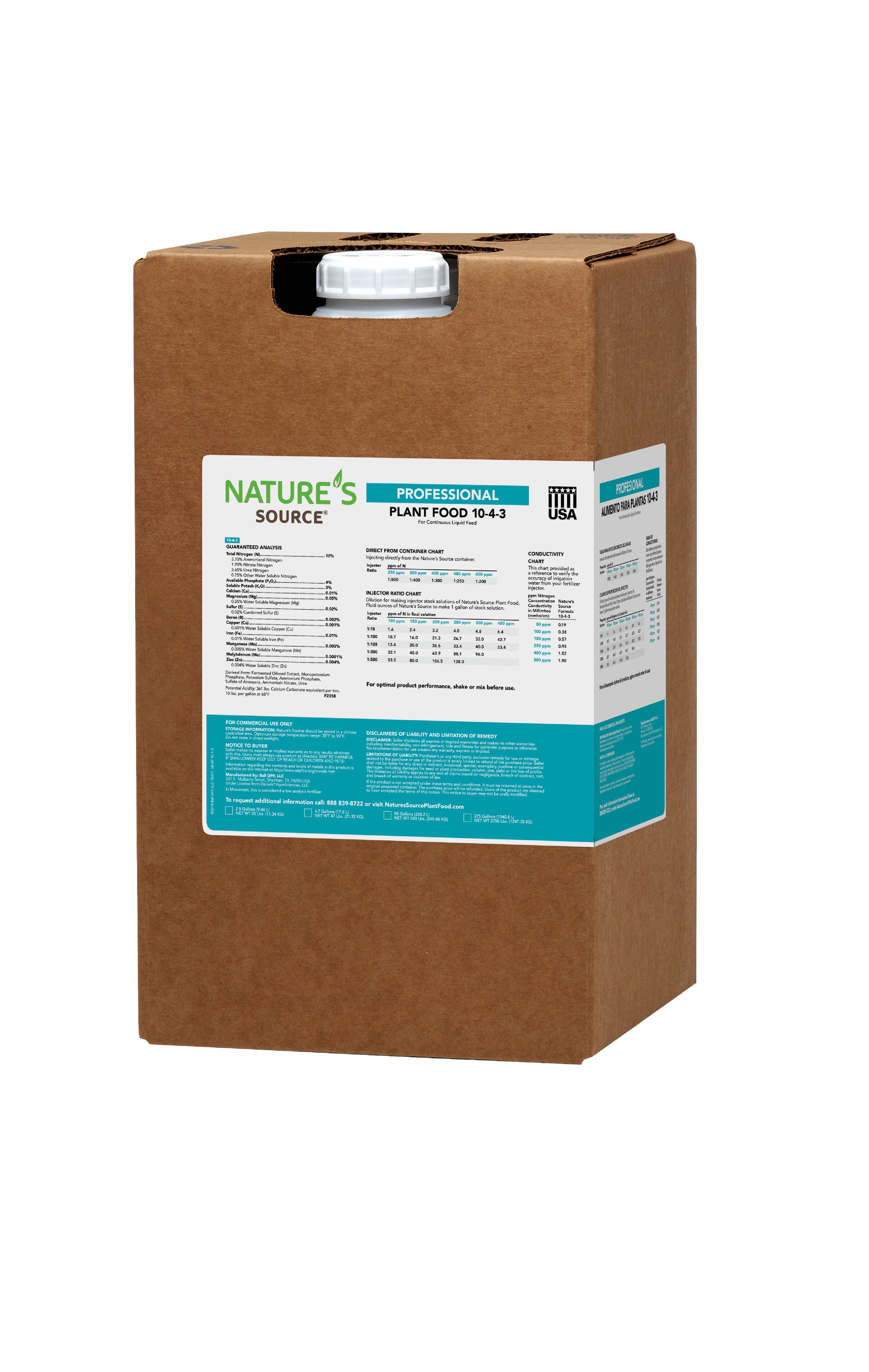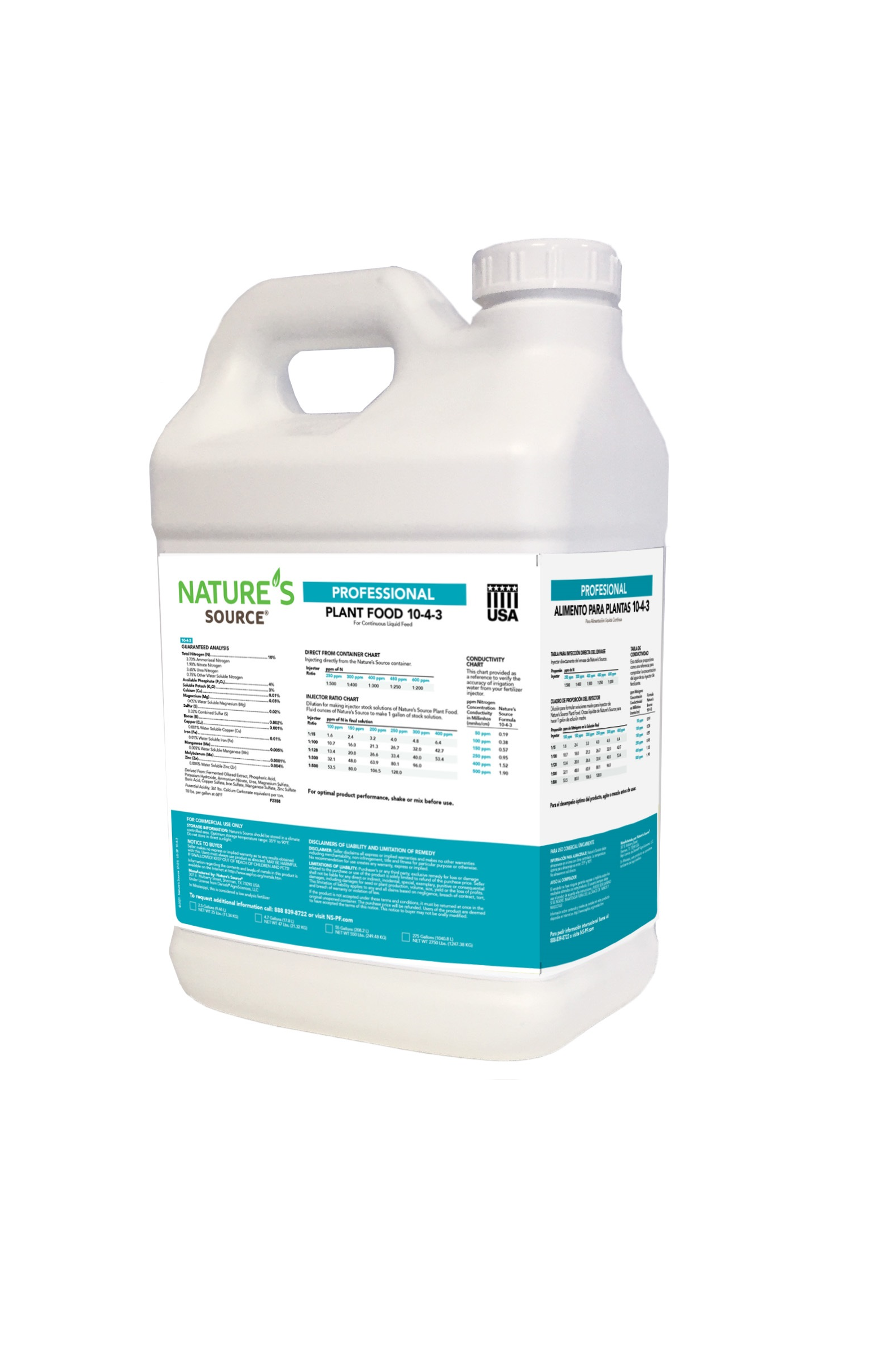 Effective. Ideal for a wide range of crops and soil conditions, Nature’s Source Professional 10-4-3 promotes rapid nutrient response and Nutrient Use Efficiency. Compatible with most chemistries and can be applied with fungicide and insecticide applications.